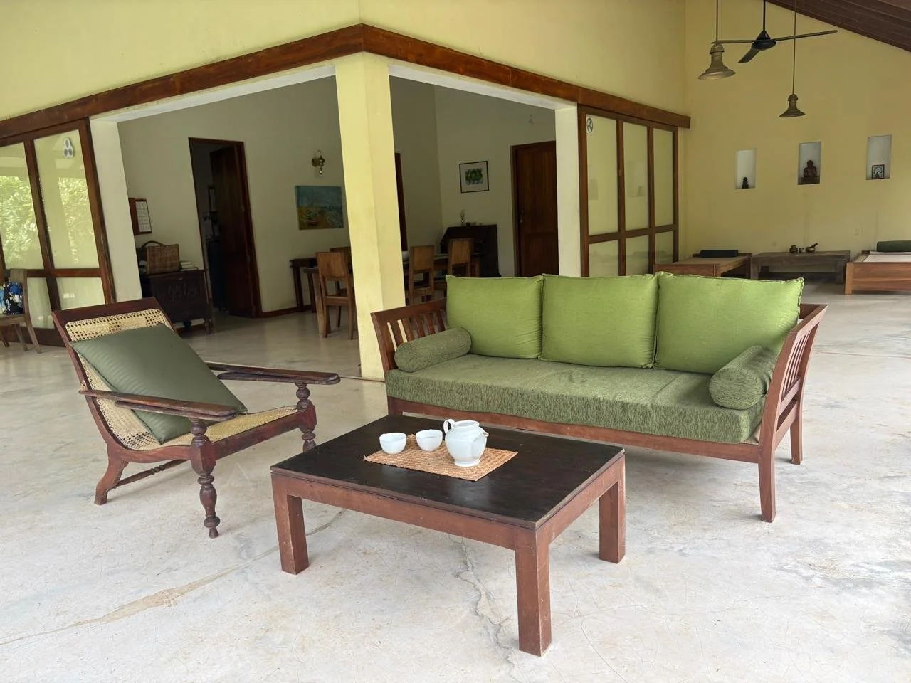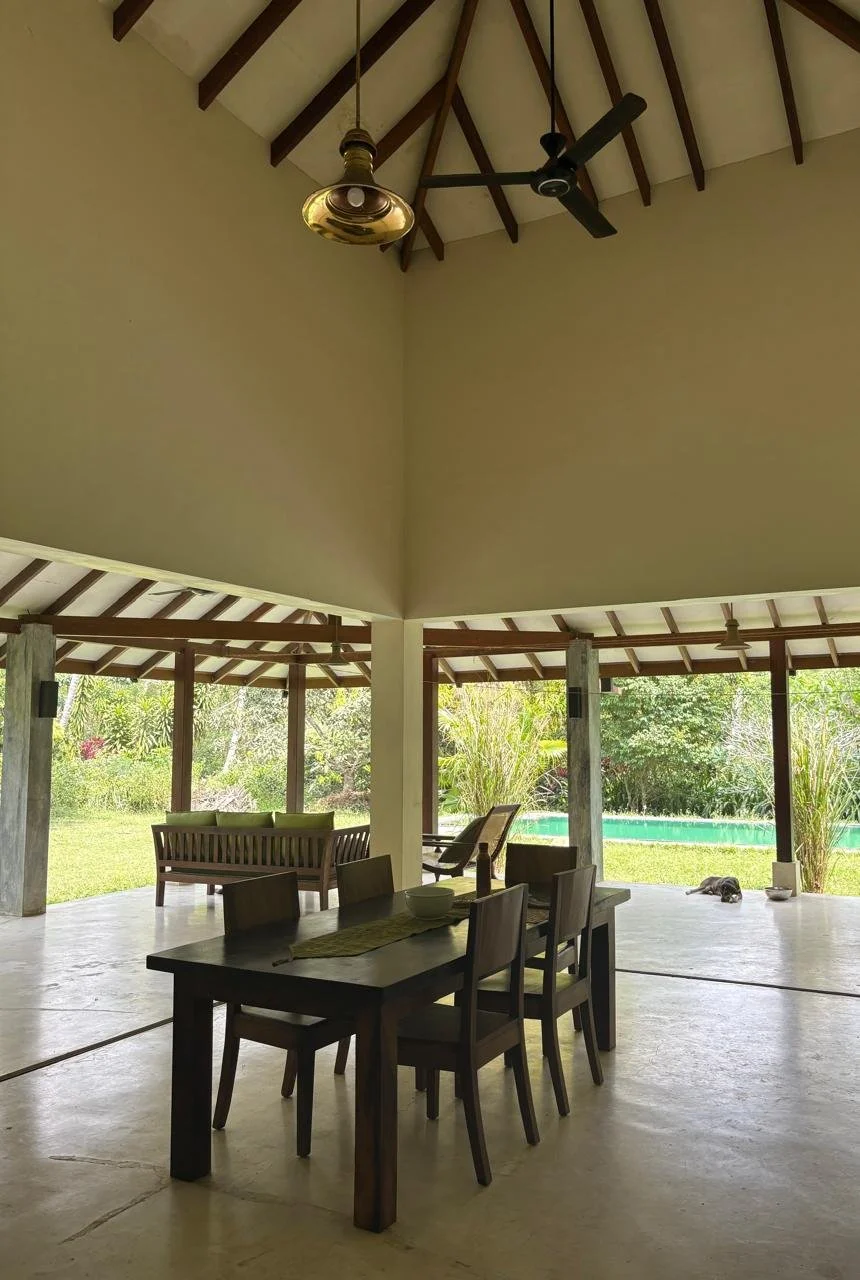 Nestled in a private 8.5 acre wild, natural cinnamon and coconut jungle farm, the spacious villa has two ensuite bedrooms, one with a private veranda.